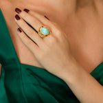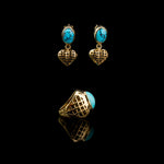 We were proudly commissioned to create a perfect gift for a beautiful Persian mother to celebrate her love and heritage and we designed The Golden Heart set of a ring and earrings. They are home to magnificent Persian turquoise. These stones are mined in Nishapur district of Iran.
