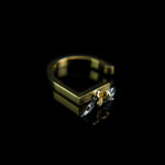 This ring is designed to bring you joy with its unique design of tiny handmade flower and black rhodium plated leaves. Made in yellow gold vermeil on sterling silver, the handcrafted Ring is the short version of the 'Lines Trilogy' and belongs in our ‘Lines and Flowers’ family of rings.
