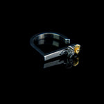 This handcrafted Ring is the tall version of the 'Lines Trilogy' and belongs in our ‘Lines and Flowers’ family of rings. It is made in black rhodium vermeil on sterling silver. Single golden flower emphasises on the character of this elegant ring.